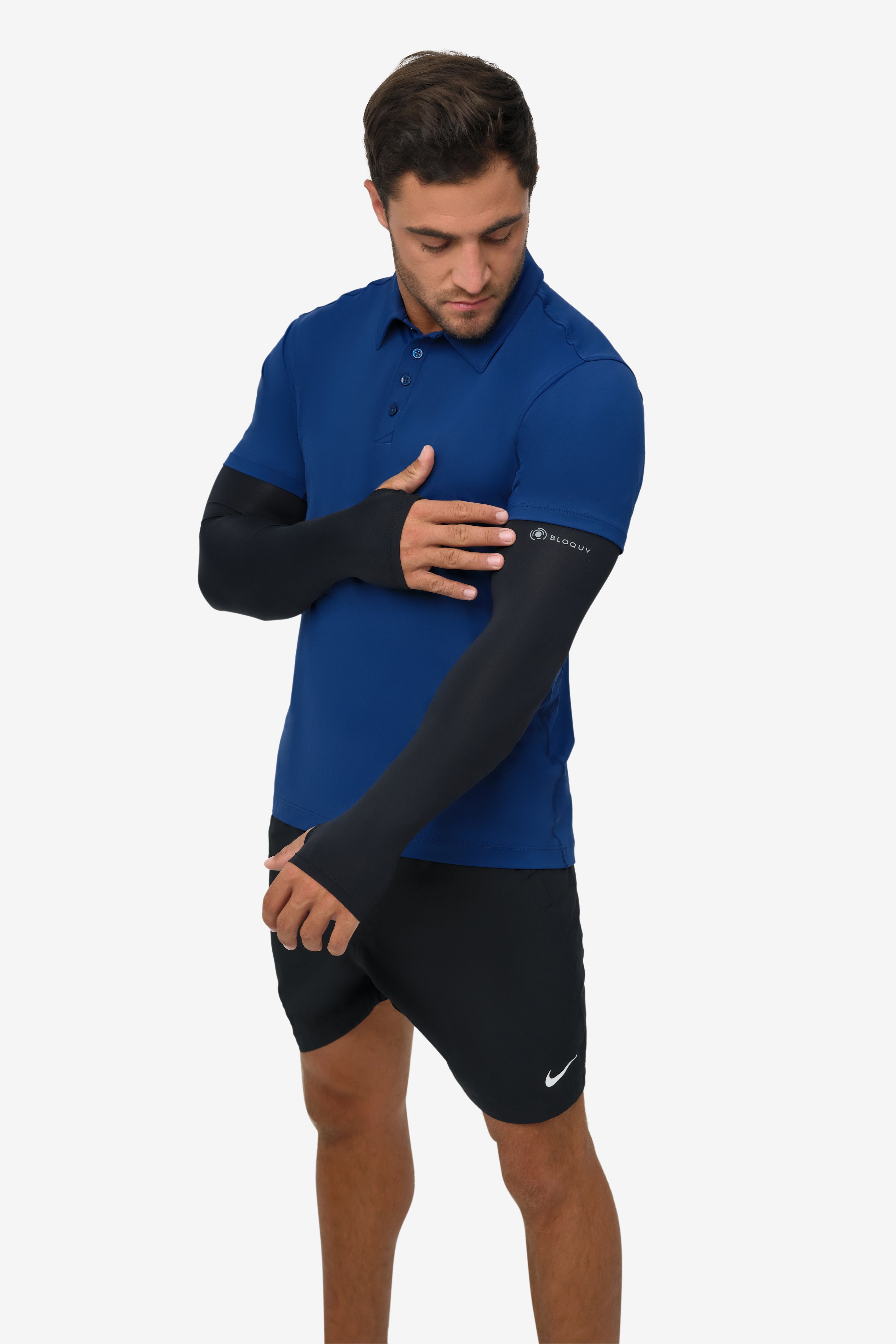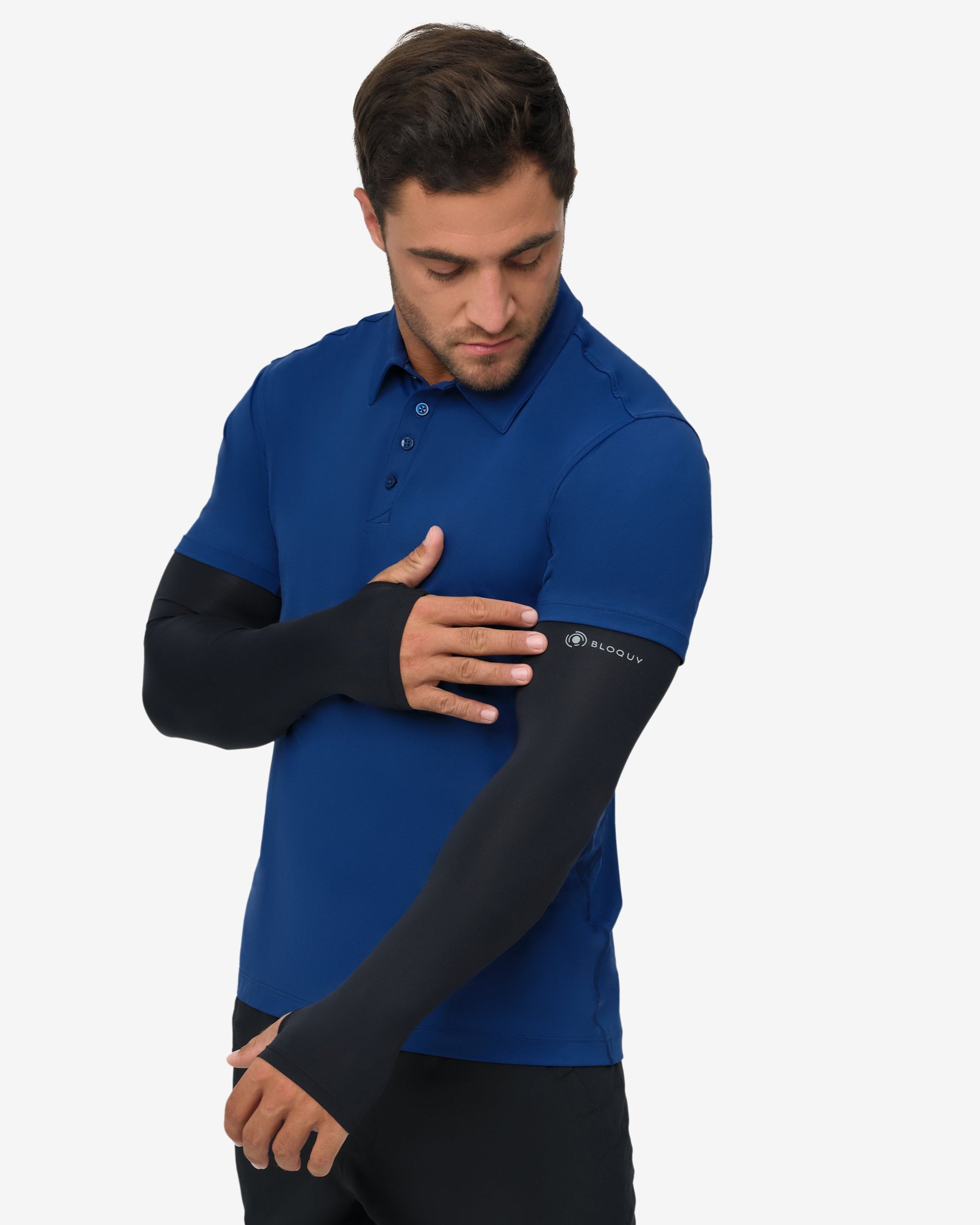 BloqUV 50+ UPF men’s and women’s sun sleeves provide sun protection from mid-bicep to hands when wearing short sleeves or non-UPF long sleeve shirts. Designed for athletic and routine activities with prolonged sun exposure. Perfect SPF arm covers for driving, tennis, golf, running, walking, boating, fishing, biking, hiking, horseback riding, gardening, driving, flying, construction and travel