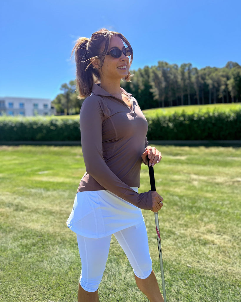 The BloqUV sun protective ladies’ 3 quarter zip top is a best seller for good reason. The high neck and long sleeves offer sun protection from the neck to the hands with versatility to wear on its own or layer with other pieces. Perfect over a tank top or under a windbreaker or jacket. Enjoy SPF protection while skiing, running, walking, fishing, pickle ball, boating, biking, horseback riding, paddle boarding or playing tennis and golf.